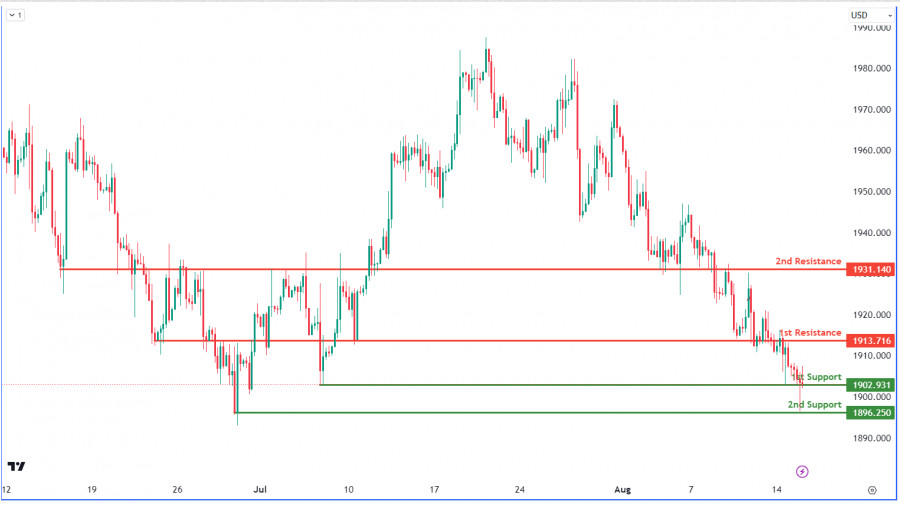 इस समय XAU/USD चार्ट पर दिखाई देने वाली तेजी की गति से संभावित ऊपर की ओर रुझान का संकेत मिलता है। इस गति के कारण कीमत 1913.71 पर पहले प्रतिरोध स्तर की ओर बढ़ सकती है। 1902.93 पर पहला समर्थन, जो महत्वपूर्ण फाइबोनैचि स्तरों के साथ मेल खाता है, और 1896.25 पर दूसरा समर्थन भी तेजी की गति की संभावना को बढ़ाता है। दूसरी ओर, 1913.71 पर पहला प्रतिरोध स्तर एक महत्वपूर्ण प्रतिरोध स्तर माना जाता है, और 1931.14 पर दूसरा प्रतिरोध ऊपर की ओर बढ़ने में और बाधाएं पेश कर सकता है।