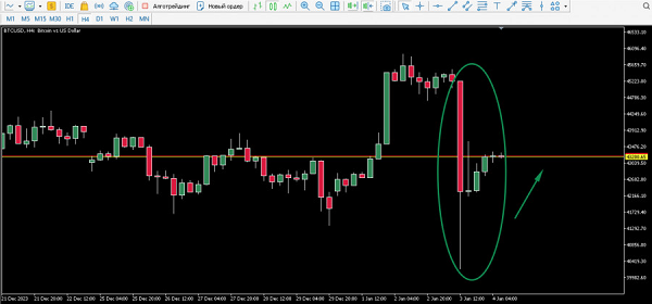 सकारात्मक भावना का चरम 3 जनवरी को आया, जब बिटकॉइन की कीमत लगभग $46k के स्तर पर पहुंच गई। हालाँकि, उसी दिन की घटनाओं से पता चला कि बिटकॉइन बाजार बेहद अस्थिर और अस्थिर बना हुआ है। दिन के दूसरे भाग में, 3 जनवरी को, बीटीसी-ईटीएफ के बारे में परेशान करने वाली खबरों के बीच, बिटकॉइन उद्धरणों में $40.8k के निशान के पास प्रमुख समर्थन क्षेत्र में तेज गिरावट का अनुभव हुआ। बुल्स के लिए इस तेज़ और दर्दनाक गिरावट ने आने वाले दिनों में बीटीसी की ऊपर की ओर बढ़ने की क्षमता को काफी कम कर दिया है।
