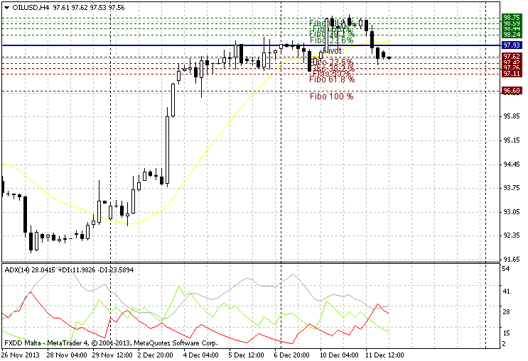 Trading analysis for 12th Dec, 2013. OIL in DAILY chart shows selling from the 1st resistance level. If it continue to selling then it goes below to the strong support level 94.33.