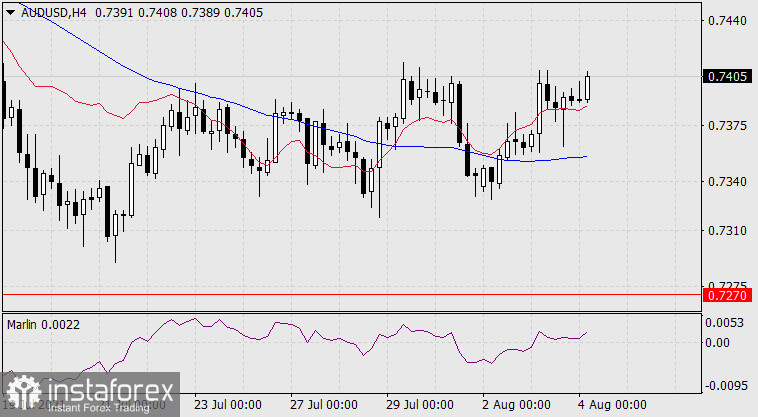 कल, ऑस्ट्रेलियाई डॉलर अमेरिकी डॉलर के दबाव में 15 अंक गिर गया, जो 0.22% बढ़ा। ऑस्ट्रेलियाई ने ऊपर की ओर भावना नहीं खोई है - मार्लिन ऑसिलेटर ऊपर की ओर प्रवृत्ति क्षेत्र में बस गया है।