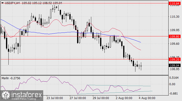 मार्लिन ऑसिलेटर की सिग्नल लाइन ने विकास क्षेत्र की सीमा को छुआ, लेकिन निश्चित रूप से कल विकास क्षेत्र में प्रवेश करने की कोई शर्त नहीं थी - बाजार आज की अमेरिकी श्रम बाजार रिपोर्ट की उम्मीद कर रहे थे।