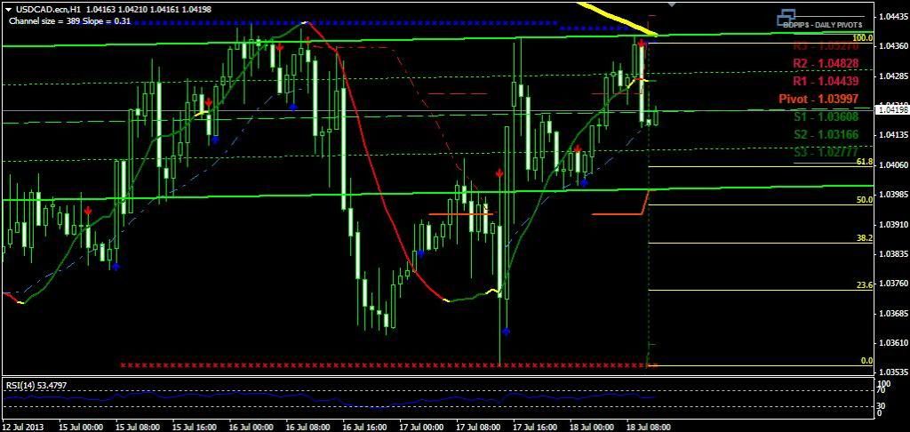 USD/CAD pair price already breakout daily resistance 1 level (1.04439) and touched upper trend line. Now the price is down trend. I think the price may touch Fibo 61.8 level.
