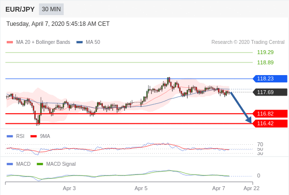 Alternative scenario: in excess of 118.23, the EUR / JPY could go to 118.89 and 119.29.