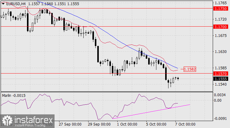 मुख्य घटनाएं चार घंटे के पैमाने पर सामने आती हैं - कीमत दो दिनों के लिए एमएसीडी लाइन के प्रतिरोध को दूर नहीं कर सकती है। इस रेखा के ऊपर समेकित करने से कीमत आक्रामक हो जाएगी। मार्लिन ऑसिलेटर सकारात्मक क्षेत्र में बना हुआ है, जो 55% पर बढ़ते परिदृश्य की संभावना का समर्थन करता है। 1.1570 समर्थन के तहत समेकित करने से 1.1448 (मार्च 2019 उच्च) की गिरावट के साथ एक वैकल्पिक परिदृश्य खुल जाएगा।