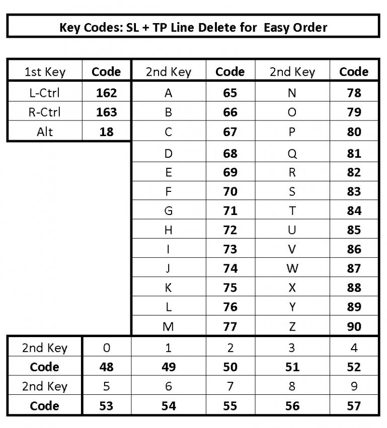 2. Assign associated hot key codes (162 + 90) to inputs window of SL + TP line delete indicator.