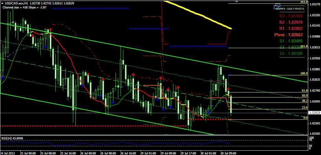 USD/CAD pair is now down trend. The price already breakout daily pivot point (1.02663). I think the price may touch daily support 1 level (1.02495).