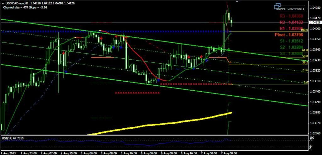 USD/CAD pair price already touched daily resistance 2 level (1.04132) and breakout upper trend line. Now the pair try to move down ward. I think the price may touch Fibo 100.0 level.