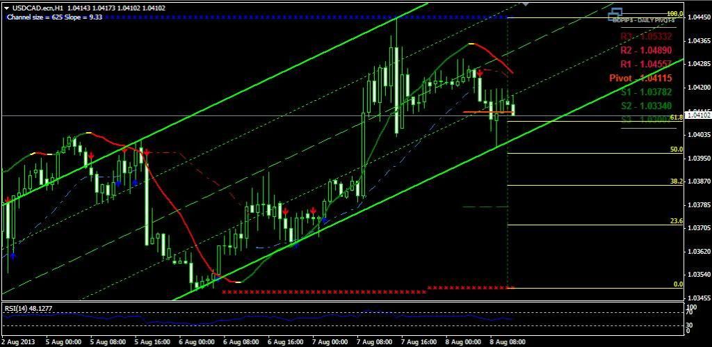 Usd/cad analysis for 08.08.2013 by using pivot indicator.