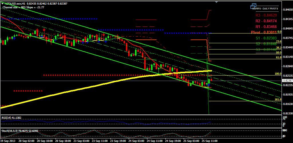 Nzd/usd analysis for 09.25.2013 by using pivot indicator.