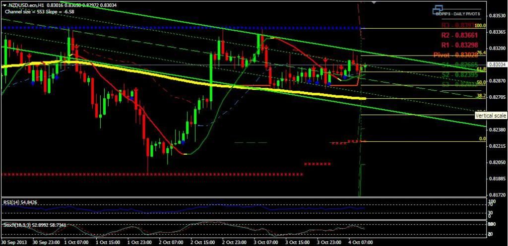 NZD/USD pair is now up trend. The price already touched daily pivot point (0.83298). I think the price may touch Fibonacci 76.4 level and upper trend line.