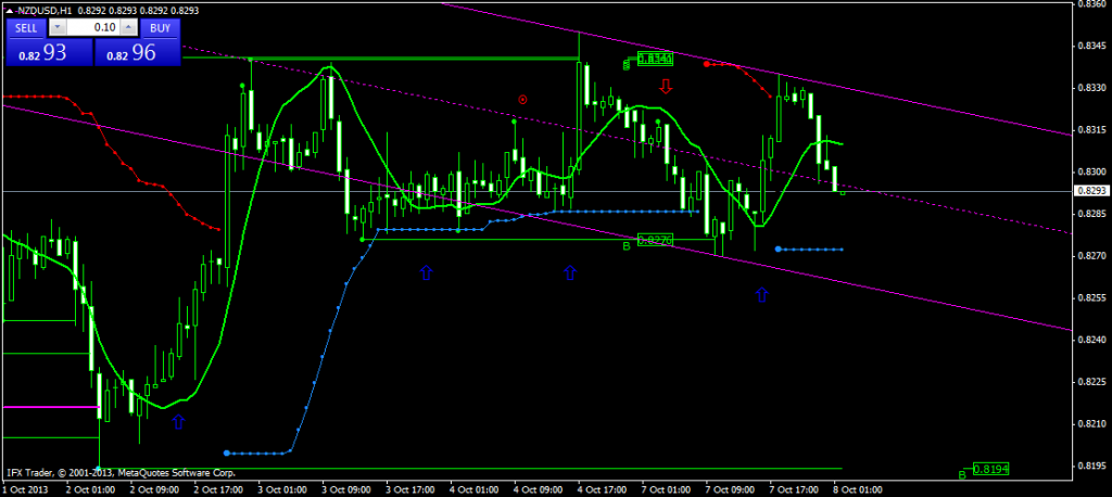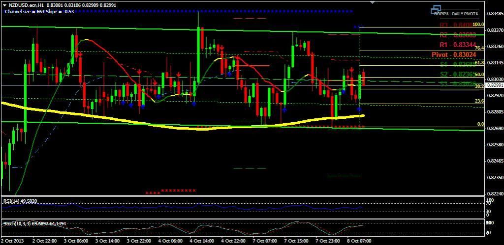 NZD/USD pair is now down trend. The price already touched daily pivot point (0.83024). I think the price may touch Fibonacci 38.2 level.