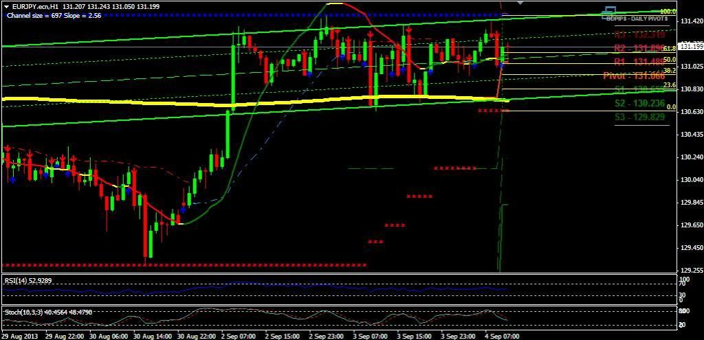 but it is by looking at the position on the market today gained 131.45 points pivots, yesterday high at 131.81 and yesterday low at 130.81 so support and resistance