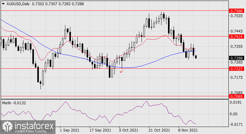 ऑस्ट्रेलियाई डॉलर कल 40 अंक नीचे था। कीमत दैनिक पैमाने पर एमएसीडी संकेतक लाइन के नीचे लौटी और इसके नीचे समेकित हुई। मार्लिन ऑसिलेटर