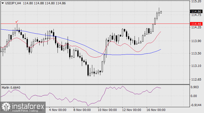 येन फिर से मजबूत होने की दिशा में दिख रहा है। पिछले शुक्रवार को, येन ने 53 अंकों की सीमा में कारोबार किया, और 114.46 के सिग्नल स्तर से ऊपर जाने की हिम्मत नहीं की, जो कीमत के लिए 115.80-116.15 के लक्ष्य सीमा तक का रास्ता खोलता है।