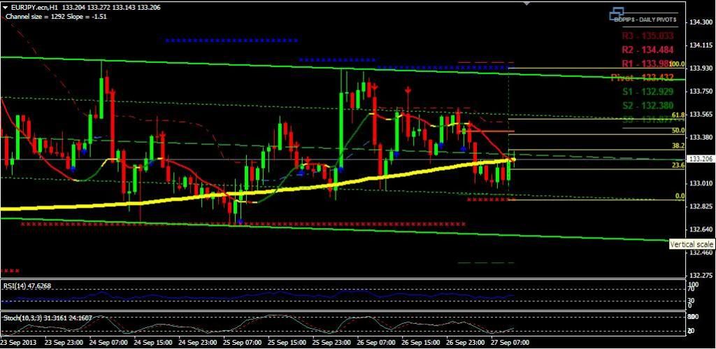 Eur/jpy analysis for 09.27.2013 by using pivot indicator.