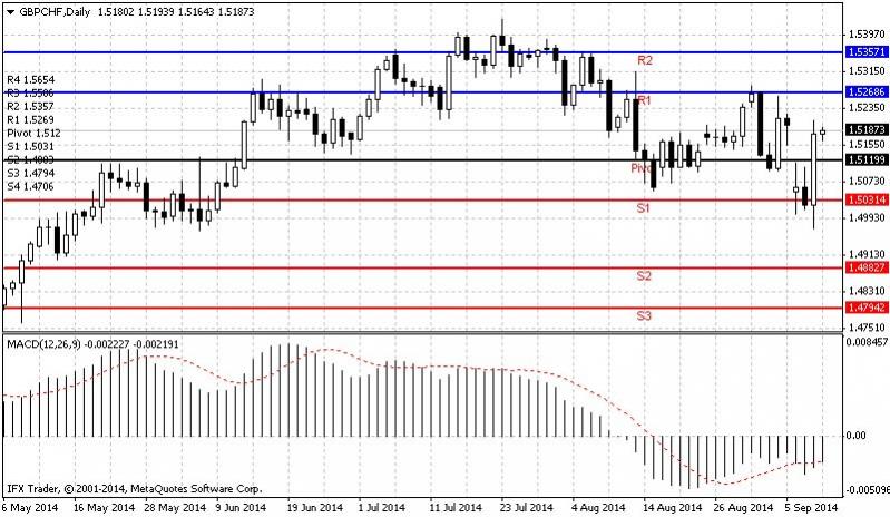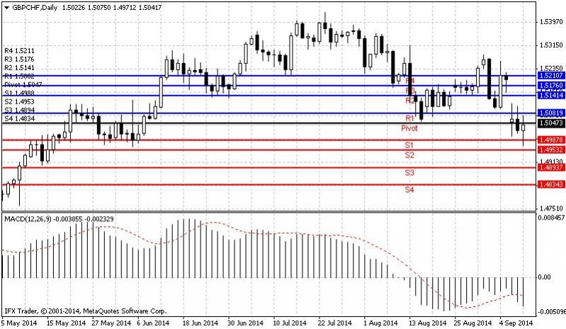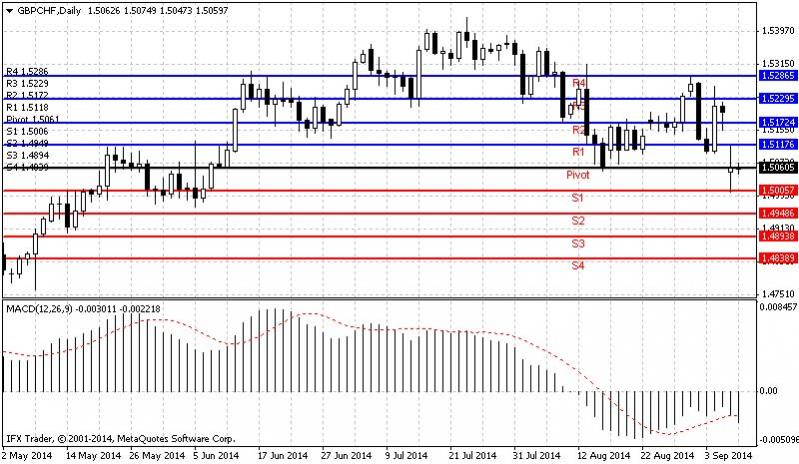 Trading analysis for dated 09th September, 2014. In Daily chart GBPCHF is flat. At present GBPCHF on the pivot point. It is important to break support or resistance levels to identify the trend.