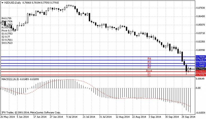 Trading analysis for Daily forecast of NZDUSD 01 October, 2014. In Daily chart NZDUSD is flat. At present NZDUSD on the pivot point. It is important to break support or resistance levels to identify the trend.