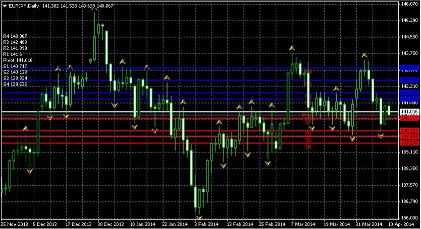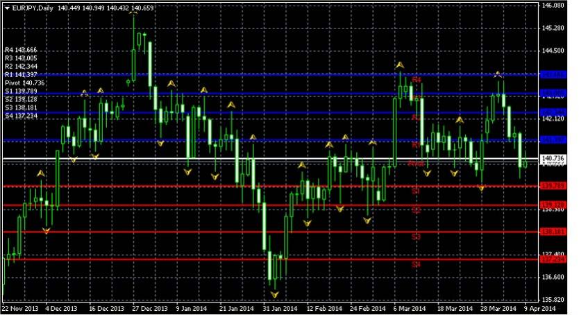 Trading analysis for 9th April, 2014. In Daily chart EURJPY hold in the pivot point. The price regularly sell from the 3rd resistance level i.e., 143.005.