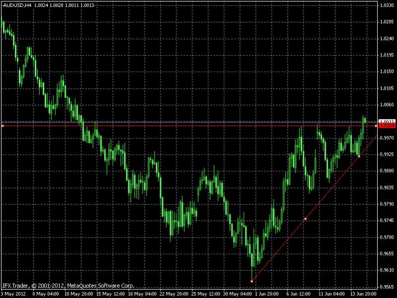 On the currency pair AUD / USD broke through 1.0000 level but it is not very sure no more candles, and volumes, so govorito that the couple do not have to fly away until the issue is not returned back to the course of the level of support 1.0000??