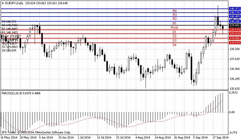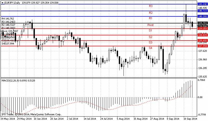 Trading analysis for Daily forecast of EURJPY 24 September, 2014. In Daily chart EURJPY shows bearish trend. At present EURJPY break 1st support level and going towards the 2nd support level. If 2nd support level breaks then next strong support level is 137.994.