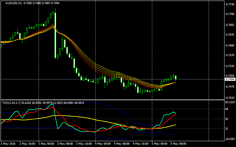 After Today opening the price heads above the Trendline indicator after the opening today and leads the market to a upward course and after that the value appears to begin rising to test the upcoming resistance heights at 0.747 as the following target move. then again the bullish way yet still not confirmed by the set of trend indicators as they don't have each of the a bullish signal so we claim for the next movement to be week at the moment. by the way the TDI indicator grasps near the higher edge and have a buy signal which could be a good warning for the cogitation of get in with the bullish drift till maintains the bearish signal.