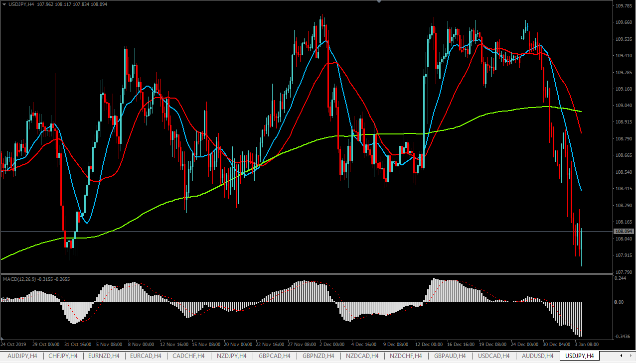 The USD/JPY pair remains steady, hovering around 108.00 following the release of the FOMC minutes. Previously the pair hit a fresh two-month low at 107.82 on rumors about an attack on a US military base in Iraq, but those were later denied and USD/JPY rebounded.