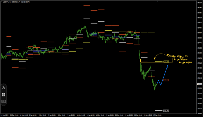 सभी को नमस्कार! मैं इस येलो टेक्निकल चैनल में usd/jpy में संभावित गिरावट पर नज़र रख रहा हूँ। आज के लिए, दिन का बैलेंस एरिया 157.95 पर है, लेकिन उस लेवल तक पहुँचने से आगे और गिरावट की संभावना कम नहीं होगी। मैं कम से कम 157.00 और फिर 156.50 को टारगेट कर रहा हूँ और वहाँ से फिर से आकलन करूँगा।