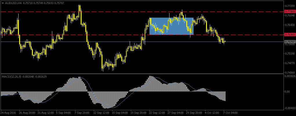 AUDUSD, H4, price level breaking 0.76000; After nearly two weeks of staying within the range from 0.76000 to 0.77000, the price is now below the support level.