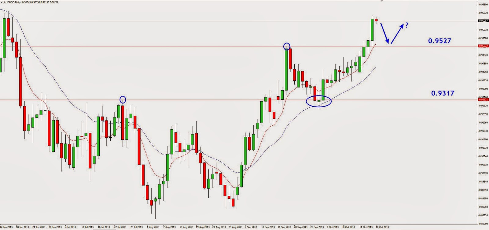 AudUsd pairs today on 2013-10-18. I predict that there will be a signal trend down so the best option is to do with the order BUY SL: 0.8351 and TP: 0.8411. I chose the open position BUY because I have the judgment that there is support and resistance as follows which I observed from fibbo indicator of