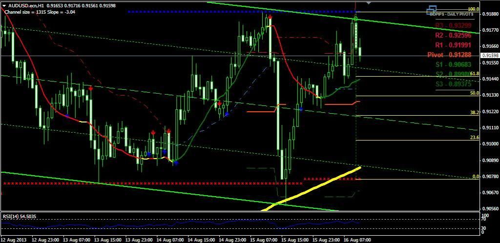 According to yesterday's forecast pair returned no results. today plan to try again to buy a pair. on the four-hour timeframe price keeps heading north. on the hourly chart shows that the trend indicators show bullish trend. I recommend buying the pair with small lots when the price is above the level of 0.91780 with a stop at 0.90574