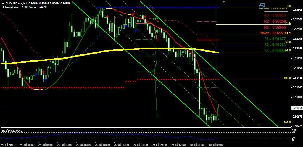Aud/usd analysis for 07.30.2013 by using pivot indicator.