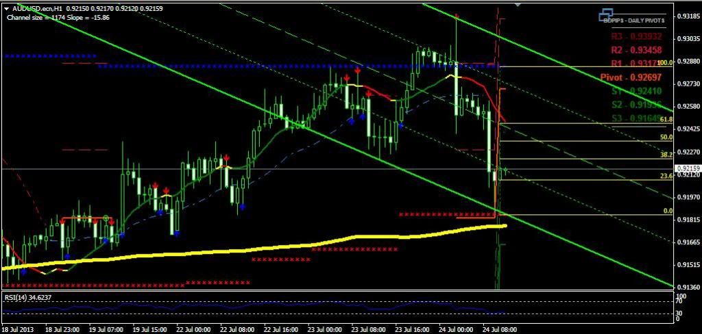 24.07.2013 11:06 GMT+1 - AUD/USD intraday: break of a ST rising trendline support.