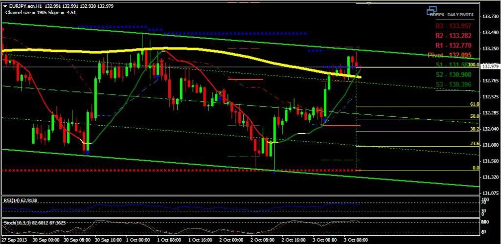 Today all jpy yen crosses fall and EURJPY is falling towords the broken May support(Resistance) line and the 55 dma at 131.35 where it found support of the 30 th September. So there is a buy order we can place and if it can rebound.
