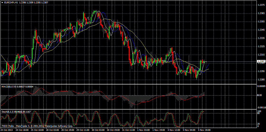 EURCHF for today's analysis by using a simple moving average on the 1 hour time frame