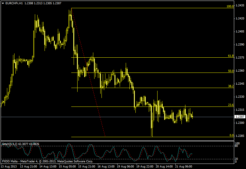 Eur/chf analysis for 08.22.2013 by using pivot indicator.