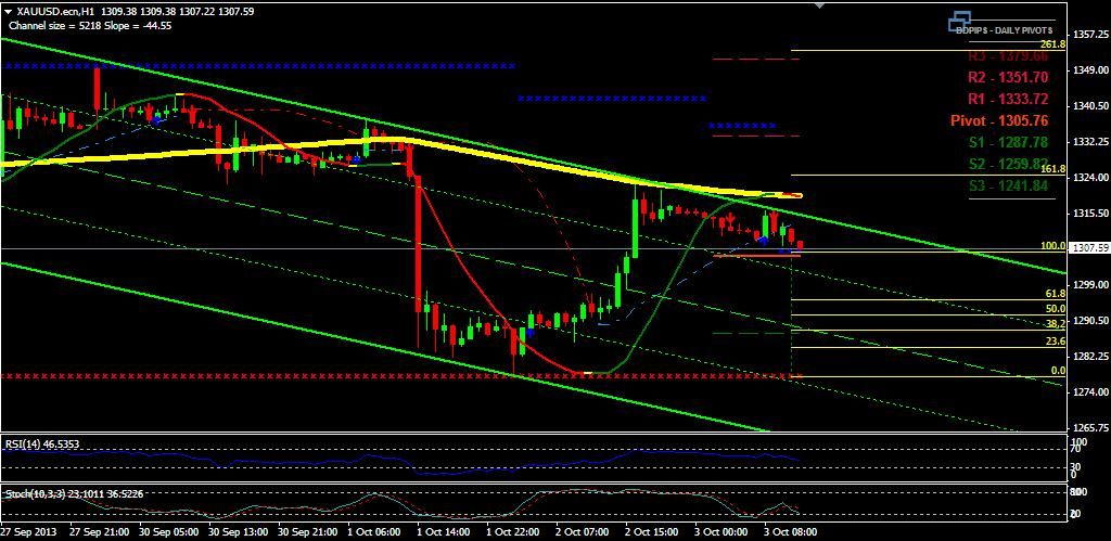 Gold analysis for 10.04.2013 by using pivot indicator.