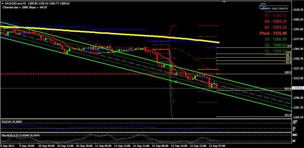 Tf bearish trend on the daily gold seems to have ended, though in H1 tf gold already in oversold area, there is likely to be corrected rose gold today, but globally the gold is still in a downtrend is not over yet. because the trend in gold is still not clear, then I recommend to wait until prices come back clear trend direction.