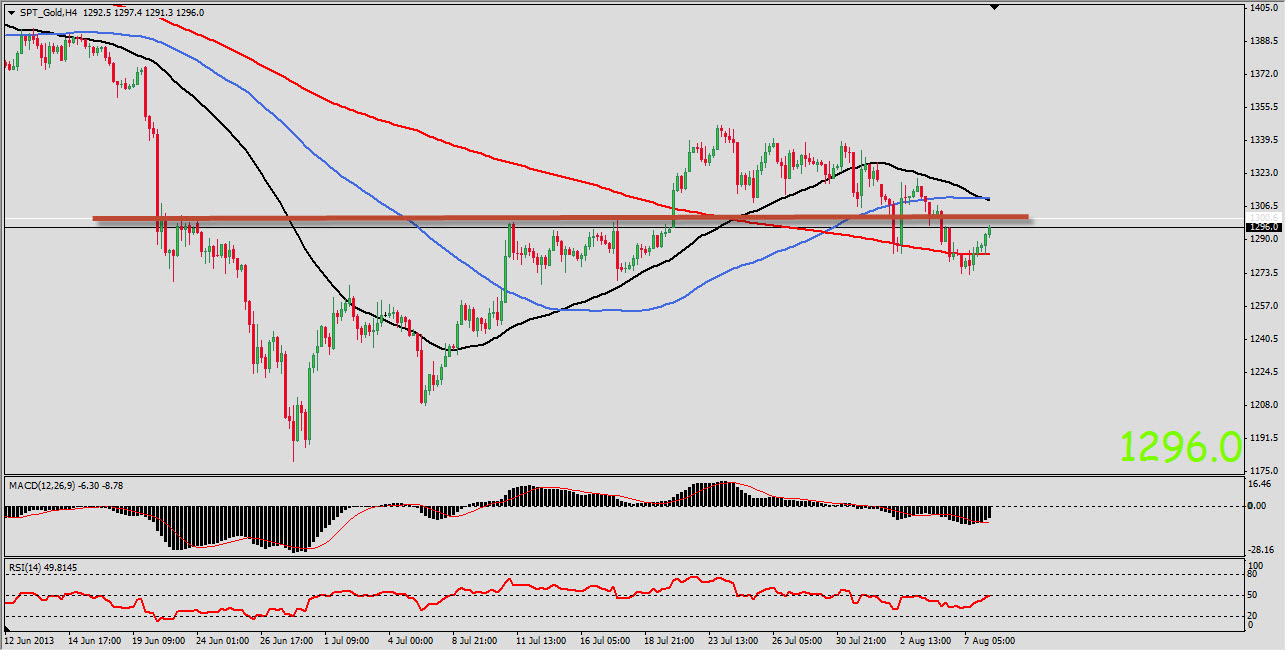 4H Chart.Gold is back in the range above 1300 and is trading above the EMA, with those pierced EMA8 EMA20 and aimed at the top, and EMA200 is horizontal and plays a supporting role.Gold rose to a drop in prices and the U.S. dollar index at the turn of the growth, which is likely soon come forward to re-break of 1300 and the first decline in almost reached the level of 1260 to 1180.Gold is moving within the descending channel and it is possible protests upper bound. where the rebound is able to sell with a small stop exposed in 1330.In the breakdown of borders and fixing up and breakdown of the level in 1343 to 23.6 fibo level becomes