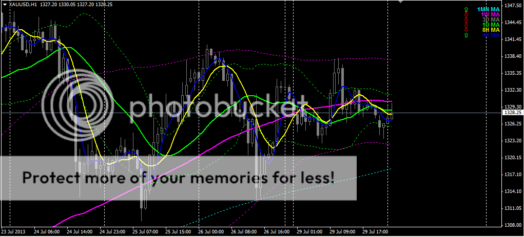 monthly movement is still in a state trending up. and already 2 times the price of trying to get a monthly normal area but failed. weekly movement in flat conditions, and prices seen bouncing off the lower BB. see BB conical shape, the price will likely move up to the weekly upper BB. it is also reinforced by the daily movements are in flat conditions, and are not able to penetrate the lower price daily. possible price is still rising. if the price has gone up and reach the daily upper BB, it is necessary to re-analysis.