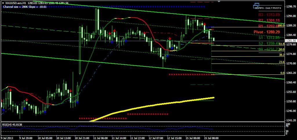 Gold analysis for 07.15.2013 by using pivot indicator.