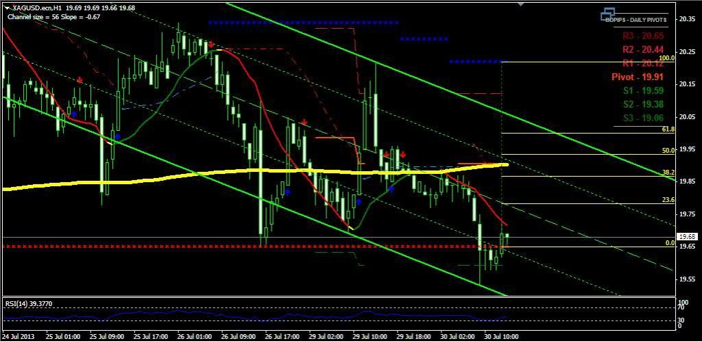 the price is come to the supporting trend line and try break but it is hold at the 19.58 level. the rsi indicator is also at the over sold side. so price will not falling more than 19.35. we can long this with the take profit at 20.11 and stop loss at the 19.25