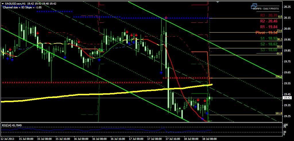 Of silver can be safely prepared for shopping, 4-hour chart is clearly seen as the price went up to the medium-sloping support level (the point of tangency 19.20), about the price of the mark completely stopped and started lateral consolidation, notably on the hourly chart double bottom formation and northern signal MACD.