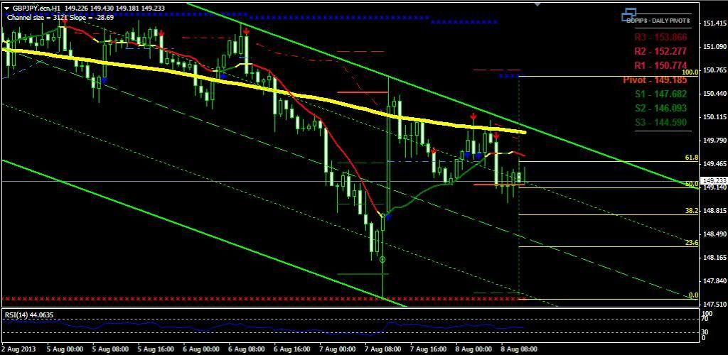 Gbp/jpy analysis for 08.08.2013 by using pivot indicator.