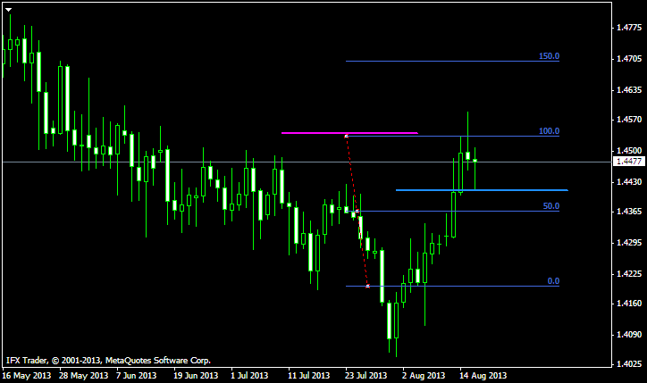 part of wave c toward 1.4950 and break above 1.4530 will clear the way as long as 1.4357 is protecting the downside and a break below 1.4357 means that we are in wave b