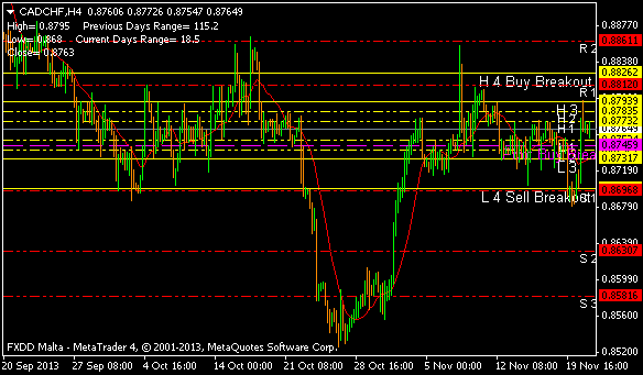 Cad/chf analysis for 11.21.2013 by using pivot indicator.