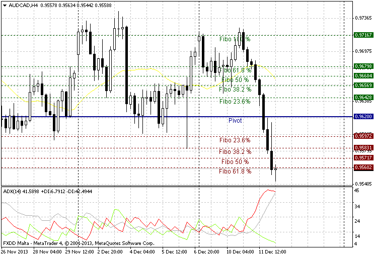 Trading analysis for 12th Dec, 2013. AUDCAD in DAILY chart shows strongly bearish trend. The price tries to break 1st support level. If 1st support level breaks then next strong support level is 0.93305.