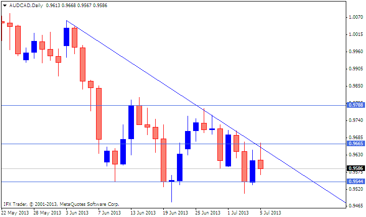 Pair has been capped by the downtrend line and resistance 0.9665 Which has been holding